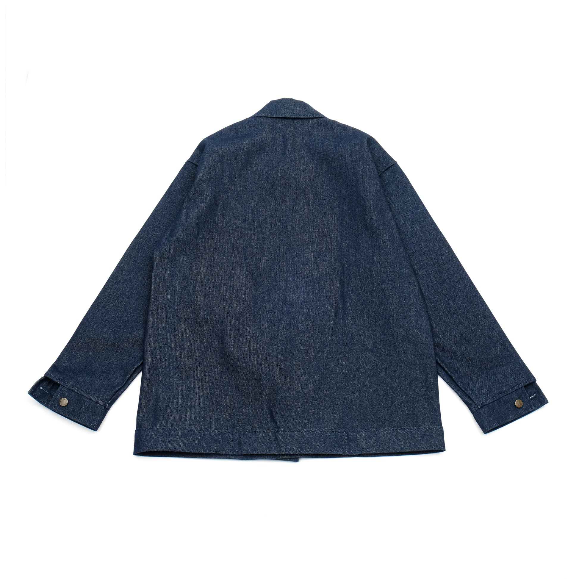 A heavyweight denim coat originally designed for work, now worn as a functional outer layer. Cut with a roomy silhouette through the body and sleeves, the waist-covering length and structured denim give it presence without feeling restrictive. Built from durable cotton denim that softens and fades with wear.